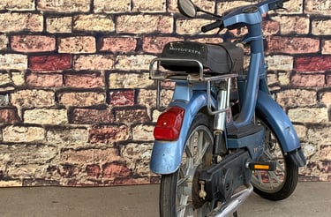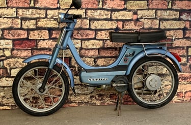 Die ersten Modelle 1969 der Vespino wurden mit dem klassischen Lenkkopf der 50S mit kleinem runden Tacho und rundem Scheinwerfer ausgeliefert - dabei wurde nur das Schaltrohr fixiert ! Felgen mit Speichenrädern und etwas mehr Blech !